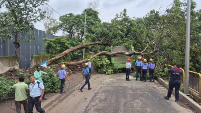 अग्निशमन दलाने दिलेल्या माहितीनुसार, सकाळी दहाच्या सुमारास पुणे- मुंबई जुन्या महामार्गावर काळभोर नगर येथे फुटपाथवरील भलं मोठं झाड भरधाव पीएमपीएल बसवर कोसळलं. सुदैवाने या घटनेमध्ये कोणीही जखमी नाही. या घटनेनंतर तात्काळ अग्निशमन दल घटनास्थळी पोहोचले.