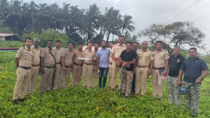 बाजारपाडा किनारी नजरेस संशयास्पद वस्तू आढळली असल्याची माहिती पोलिसांना मिळाली. याची माहिती पोलीसांना मिळाल्यानंतर पोलीसांचे पथक दाखल झाले. सर्व शहानिशा करून रेवदंडा पोलीसांनी पंचनामा करून ती ताब्यात घेतली. रायगडच्या पोलीस अधीक्षक आंचल दलाल यांनी देखील याला दुजोरा दिला आहे.