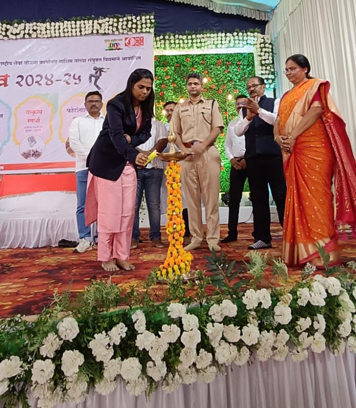 क्रीडा व युवक सेवा संचालनालय महाराष्ट्र राज्य पुणे, जिल्हा क्रीडा अधिकारी कार्यालय, वाशिम व जिल्हा युवा अधिकारी / नेहरु युवा केंद्र, वाशिम तथा राष्ट्रीय सेवा योजना यांच्या संयुक्त विद्यमाने तसेच जिल्हा क्रीडा अधिकारी कार्यालयद्वारा आयोजित जिल्हास्तरीय युवा महोत्सवाचे आयोजन दि.४ ते ५ डिसेंबर रोजी वाटाणे लॉन येथे करण्यात आले होते. या महोत्सवाचे उद्घाटन जिल्हाधिकाऱ्यांच्या हस्ते फीत कापून करण्यात आले. त्यावेळी त्या अध्यक्षस्थानावरून बोलत होत्या. प्रमुख पाहुणे जिल्हा पोलीस अधीक्षक अनुज तारे, माध्यमिक शिक्षणाधिकारी आकाश आहाळे व प्राथमिक शिक्षणाधिकारी गजानन डाबेराव डाबेराव आणि नेहरु युवा केंद्र समन्वयक अनिल ढेंगे आदी उपस्थित होते.