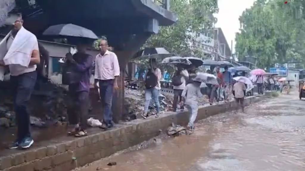 बदलापूरः बदलापूर रेल्वे स्थानकात गर्दी नियंत्रण आणि सुविधा उभारण्यासाठी रेल्वे प्रशासनाकडून केल्या जाणाऱ्या उपाययोजनांमुळे प्रवाशांना दिलासा मिळताना दिसत नाही. मात्र अपुऱ्या आणि संथगतीच्या कामांमुळे प्रवाशांचे हाल कायम आहेत. सध्या पावसामुळे प्रवाशांना फलाट क्रमांक एक आणि दोन वर भिजतच उभे राहावे लागते आहे. काही ठिकाणी छप्पर असूनही ते अपुरे असल्याने एकतर पावसापासून रक्षण किंवा लोकलमध्ये जागा अशी काहीशी बदलापुरकर प्रवाशांची स्थिती आहे. तर स्थानकाबाहेरही पूर्व भागात पाणी साचत असल्याने प्रवाशांना कसरत करत स्थानक गाठावे लागते आहे. त्यामुळे प्रवाशांत संतापाचे वातावरण आहे.
